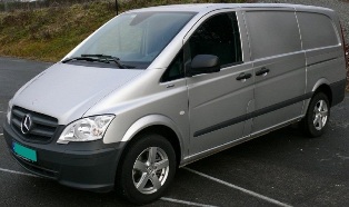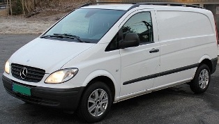 Vanlig standard varebil = med ulakkerte fangere, speildeksel og dørhåndtak
